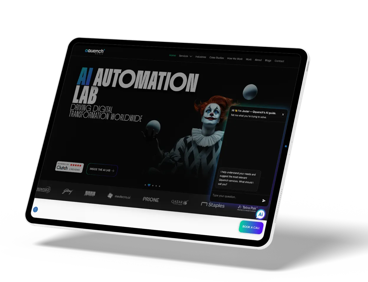 Most bots answer questions. Jester understands intent. Most bots sit at the corner of the screen. Jester becomes the digital host.
